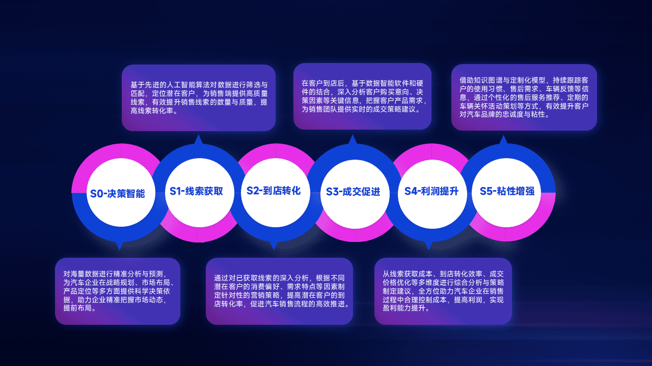 通过拓宽潜在客户来源、、、、优化线索分配并提高到店转化率,,,,以增强销售效率。。。。同时,,利用线索数据不断优化分析模型,,,,有效提升转化率,,,扩大营销影响力。。